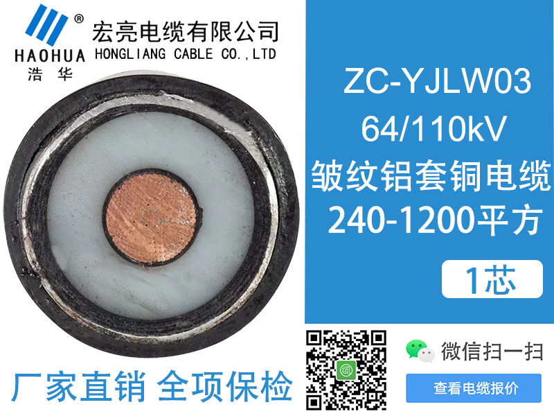 ZC-YJLW03-Z 64/110kV铜芯交联聚乙烯绝缘皱纹铝套聚乙烯外护套阻燃电力电缆